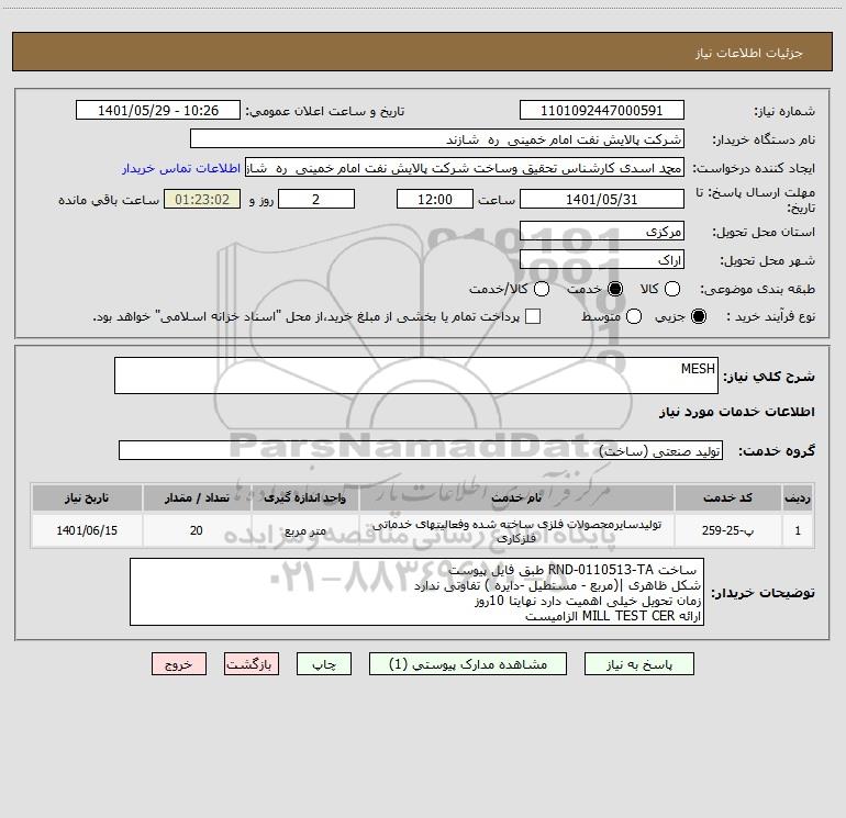 نام دستگاه خریدار:شرکت پالایش نفت امام خمینی ره شازند