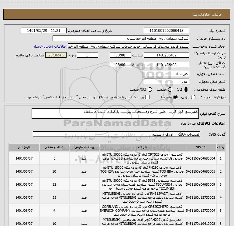 نام دستگاه خریدار:شرکت سهامی برق منطقه ای خوزستان