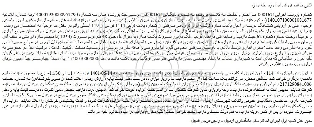 شعبه صادر کننده:شعبه اول اجرای احکام مدنی دادگستری شهرستان اردبیل/قدیم