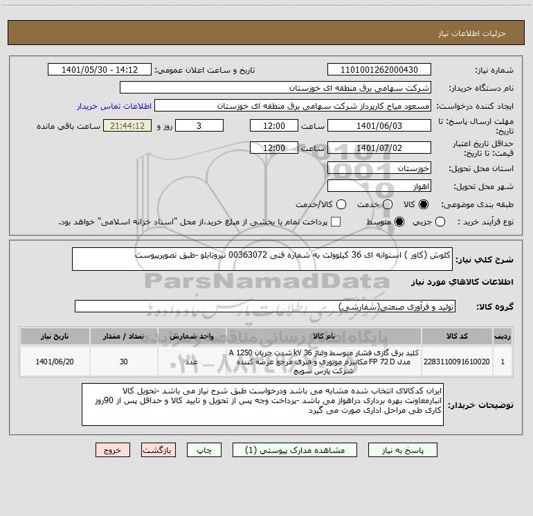 نام دستگاه خریدار:شرکت سهامی برق منطقه ای خوزستان