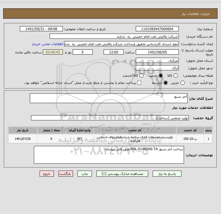 نام دستگاه خریدار:شرکت پالایش نفت امام خمینی ره شازند