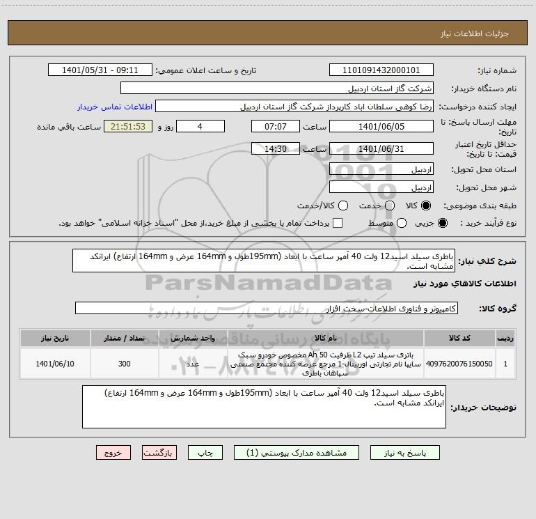 نام دستگاه خریدار:شرکت گاز استان اردبیل