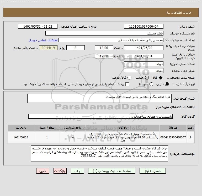 استعلام خرید لوازم رنگ و نقاشی طبق لیست فایل پیوست, استعلام خرید لوازم رنگ و نقاشی طبق لیست فایل پیوست