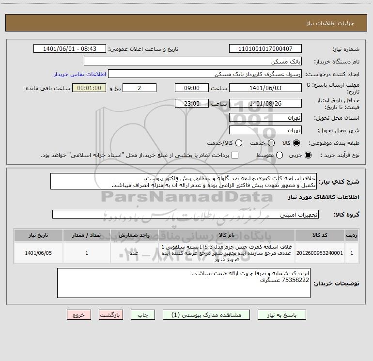 شرح کلی نیاز: غلاف اسلحه کلت کمری،جلیقه ضد گلوله و .مطابق پیش فاکتور پیوست.