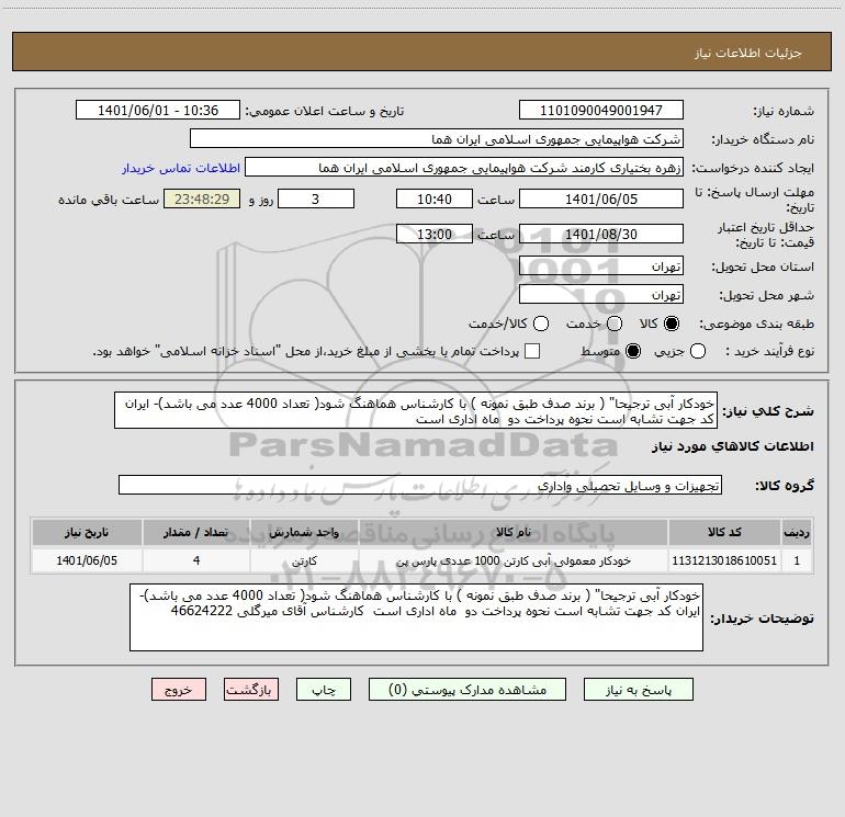 نام دستگاه خریدار:شرکت هواپیمایی جمهوری اسلامی ایران هما