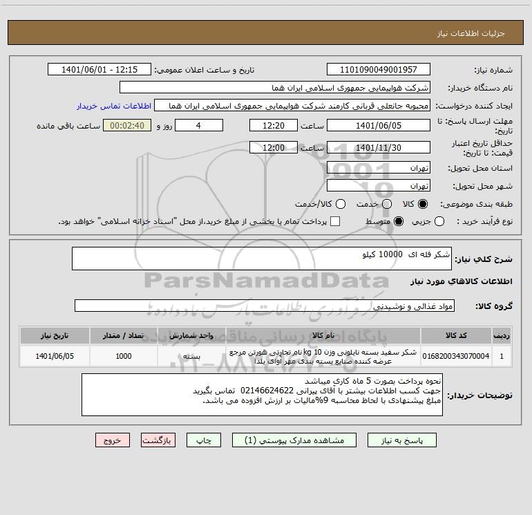 نام دستگاه خریدار:شرکت هواپیمایی جمهوری اسلامی ایران هما
