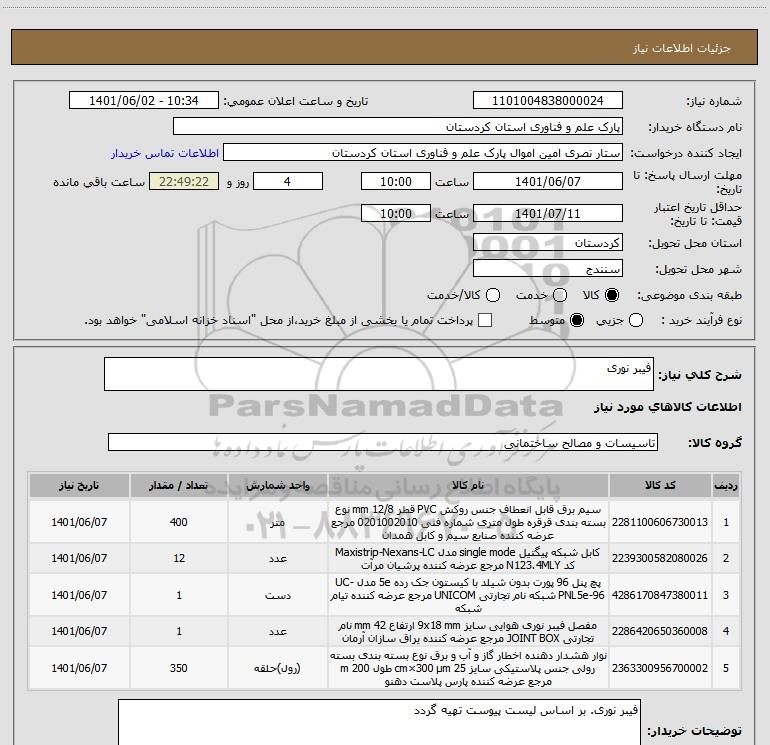 نام دستگاه خریدار:پارک علم و فناوری استان کردستان