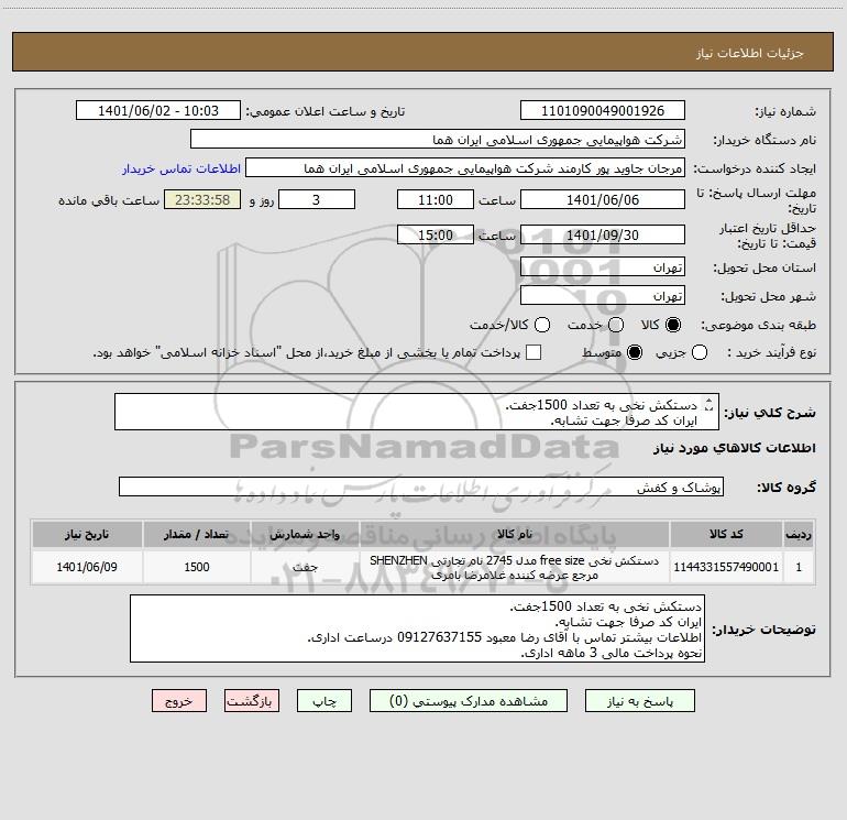 نام دستگاه خریدار:شرکت هواپیمایی جمهوری اسلامی ایران هما