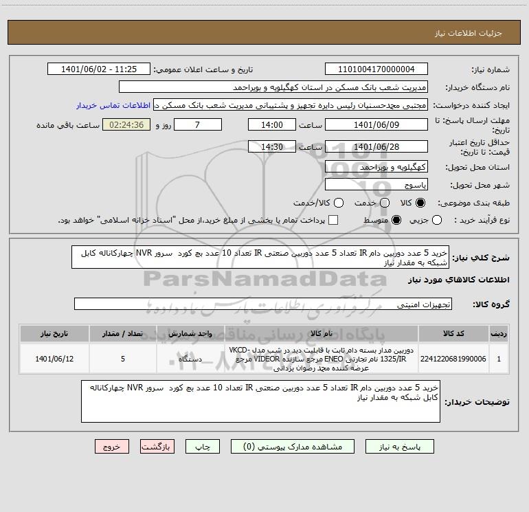 نام دستگاه خریدار:مدیریت شعب بانک مسکن در استان کهگیلویه و بویراحمد