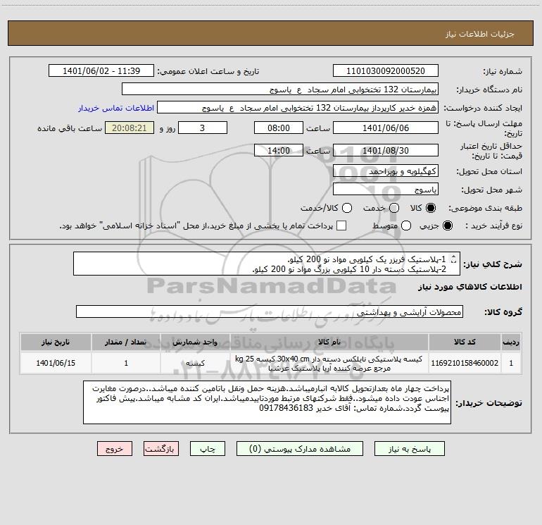 نام دستگاه خریدار:بیمارستان 132 تختخوابی امام سجاد ع یاسوج
