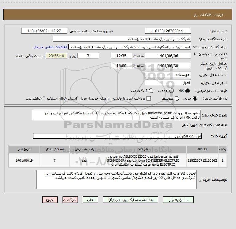 نام دستگاه خریدار:شرکت سهامی برق منطقه ای خوزستان