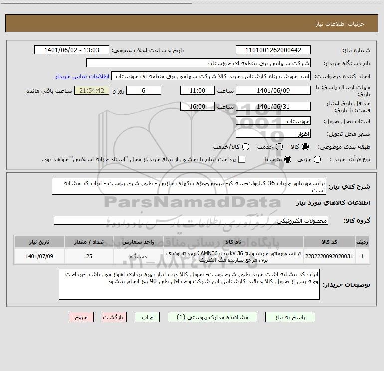 نام دستگاه خریدار:شرکت سهامی برق منطقه ای خوزستان