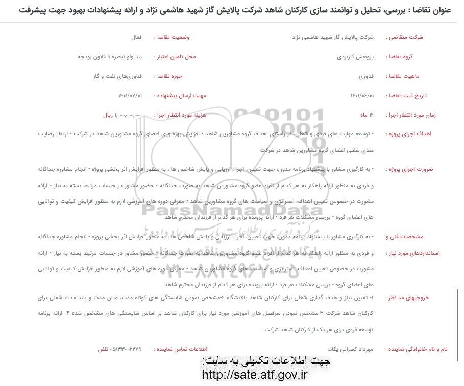 شرکت متقاضی: شرکت پالایش گاز شهید هاشمی نژاد