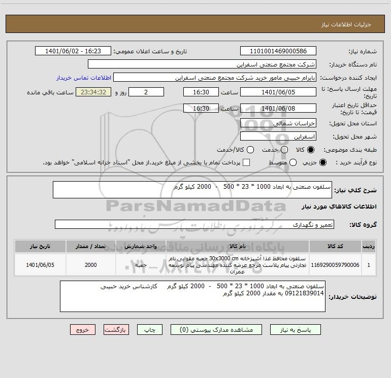 شرح کلی نیاز: سلفون صنعتی به ابعاد 1000 * 23 * 500 - 2000 کیلو گرم