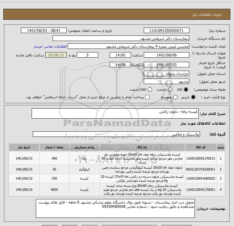 نام دستگاه خریدار:بیمارستان دکتر شریعتی مشهد