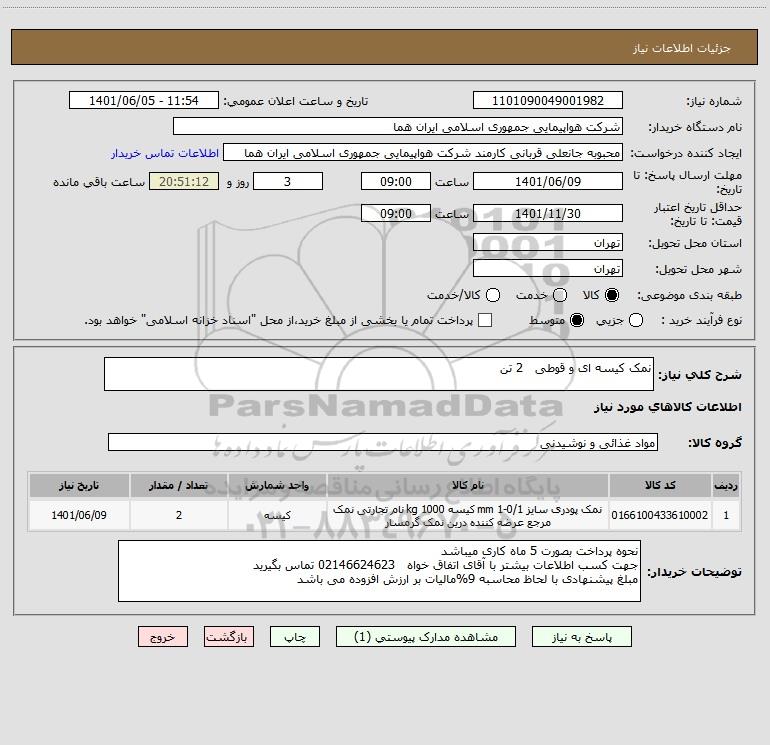 شرح کلی نیاز: نمک کیسه ای و قوطی 2 تن