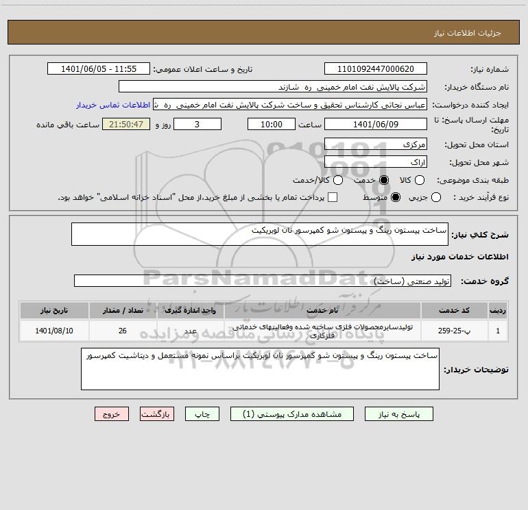 استعلام ساخت پیستون رینگ و پیستون شو کمپرسور نان لوبریکیت, استعلام ساخت پیستون رینگ و پیستون شو کمپرسور نان لوبریکیت