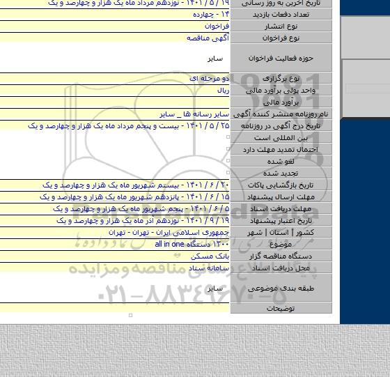 مناقصه, ۱۳۰۰ دستگاه all in one, مناقصه, ۱۳۰۰ دستگاه all in one