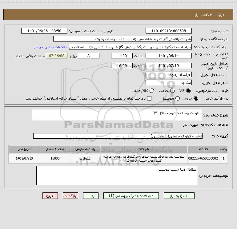 نام دستگاه خریدار:شرکت پالایش گاز شهید هاشمی نژاد استان خراسان رضوی