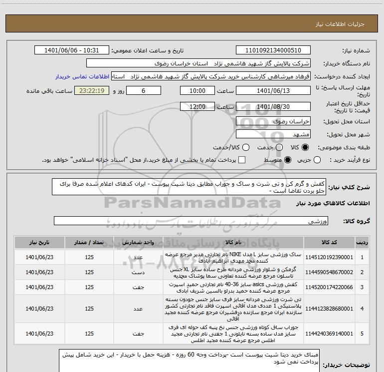 نام دستگاه خریدار:شرکت پالایش گاز شهید هاشمی نژاد استان خراسان رضوی