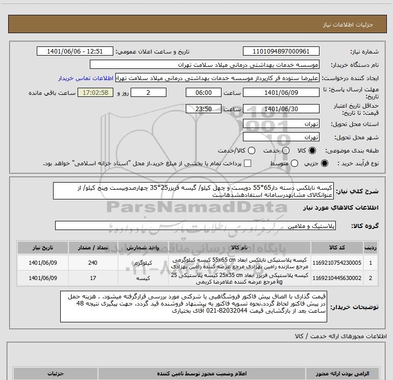 نام دستگاه خریدار:موسسه خدمات بهداشتی درمانی میلاد سلامت تهران