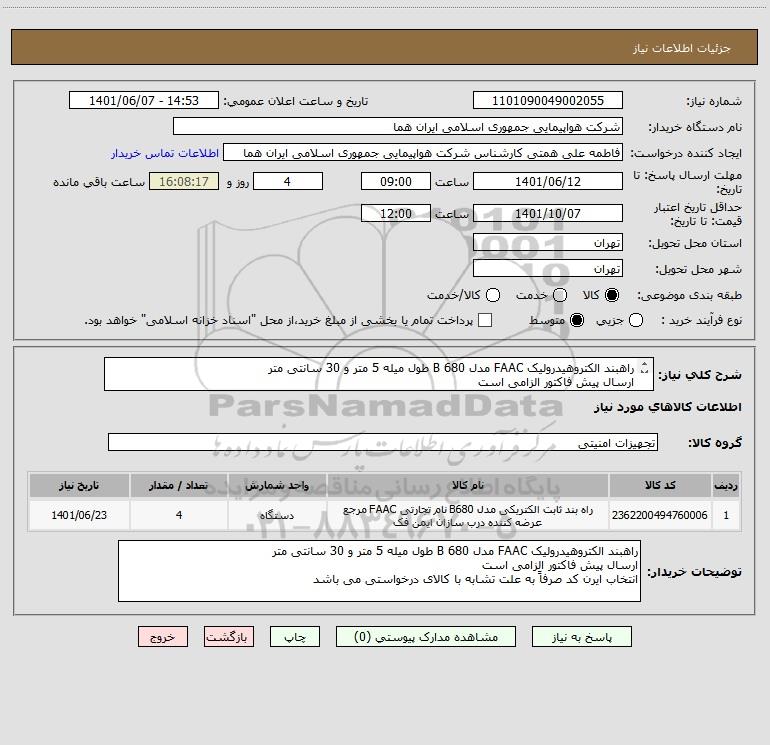 نام دستگاه خریدار:شرکت هواپیمایی جمهوری اسلامی ایران هما