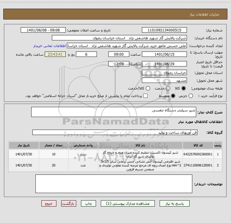 نام دستگاه خریدار:شرکت پالایش گاز شهید هاشمی نژاد استان خراسان رضوی