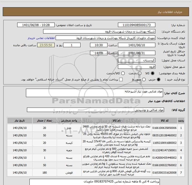 شرح کلی نیاز: مواد غذایی مورد نیاز آشپزخانه