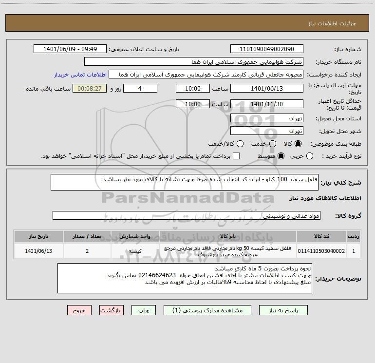 نام دستگاه خریدار:شرکت هواپیمایی جمهوری اسلامی ایران هما