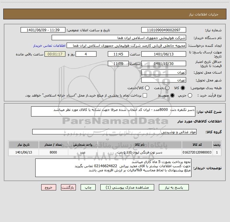 نام دستگاه خریدار:شرکت هواپیمایی جمهوری اسلامی ایران هما