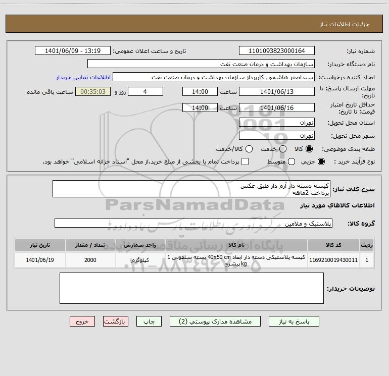 شرح کلی نیاز: کیسه دسته دار آرم دار طبق عکس پرداخت 2ماهه