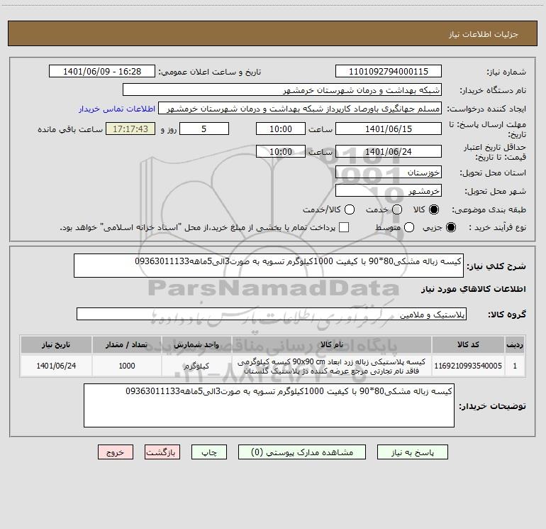 نام دستگاه خریدار:شبکه بهداشت و درمان شهرستان خرمشهر
