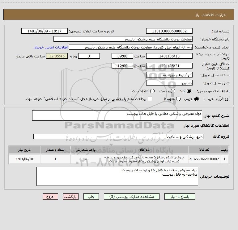 نام دستگاه خریدار:معاونت درمان دانشگاه علوم پزشکی یاسوج