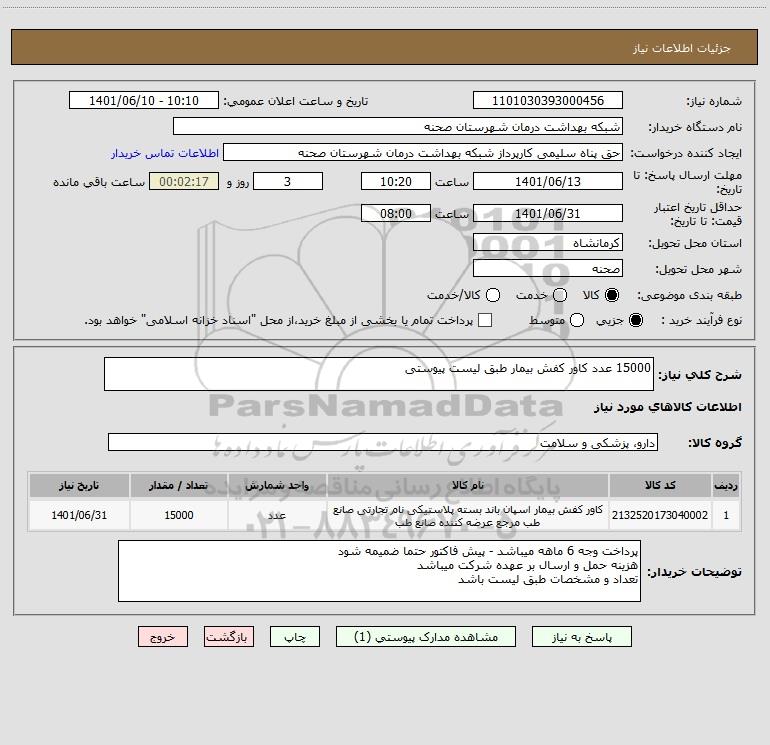 شرح کلی نیاز: 15000 عدد کاور کفش بیمار طبق لیست پیوستی