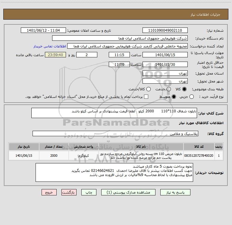 نام دستگاه خریدار:شرکت هواپیمایی جمهوری اسلامی ایران هما