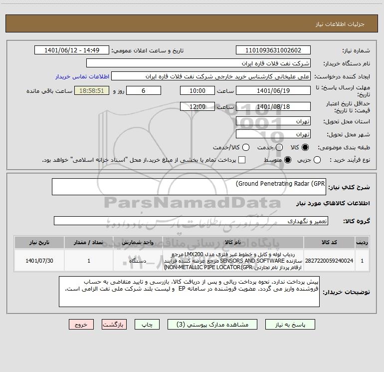 نام دستگاه خریدار:شرکت نفت فلات قاره ایران