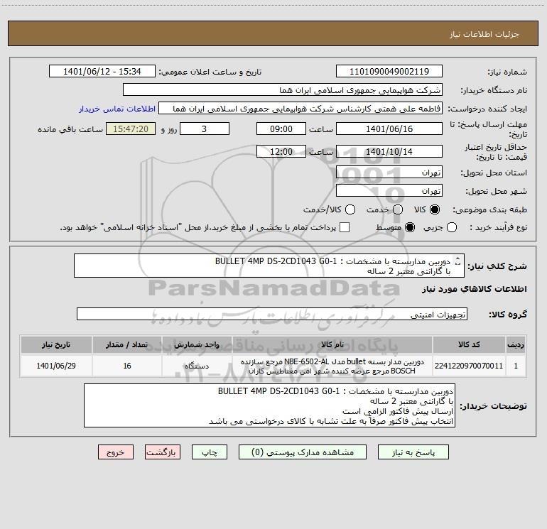 نام دستگاه خریدار:شرکت هواپیمایی جمهوری اسلامی ایران هما