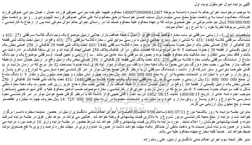 اگهی مزایده اموال غیرمنقول نوبت اول