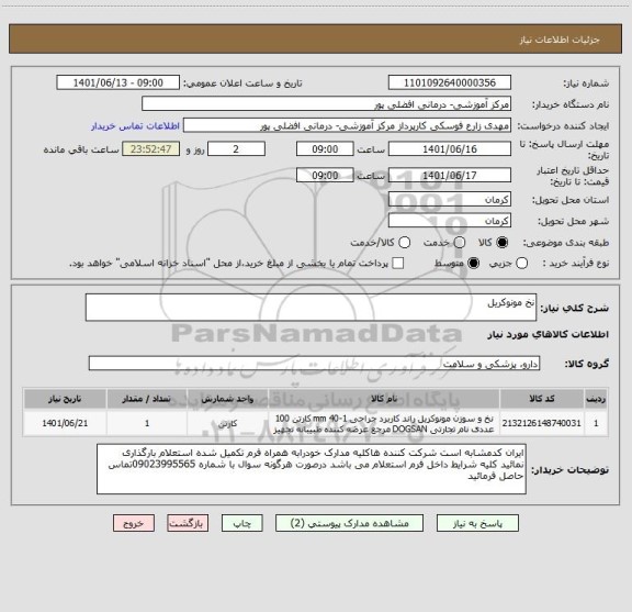 شرح کلی نیاز: نخ مونوکریل