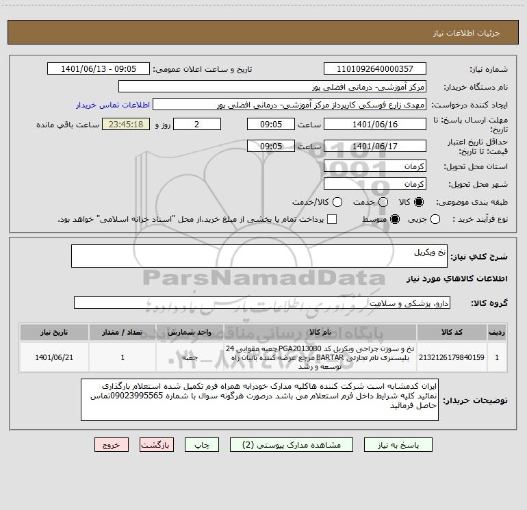 نام دستگاه خریدار:مرکز آموزشی- درمانی افضلی پور