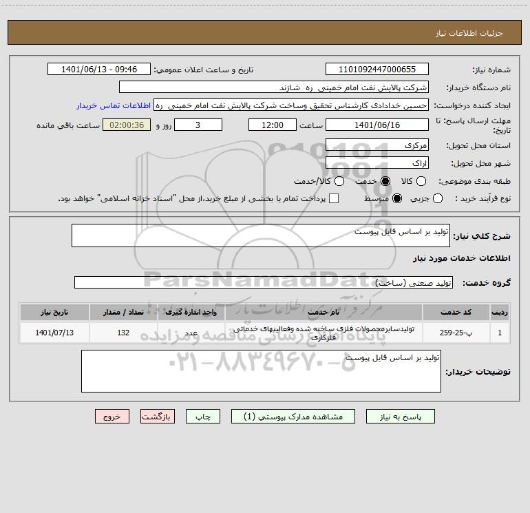 شرح کلی نیاز: تولید بر اساس فایل پیوست
