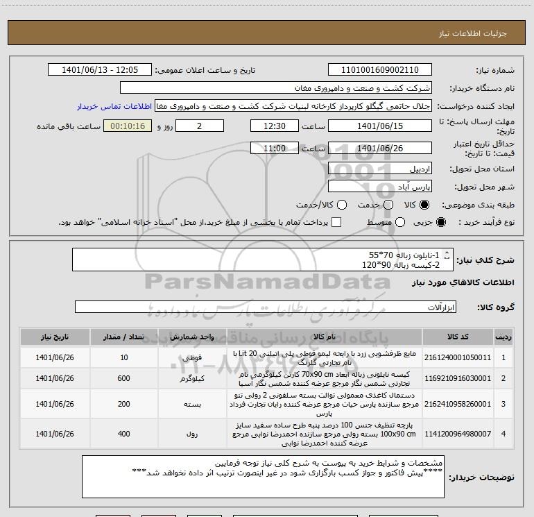 نام دستگاه خریدار:شرکت کشت و صنعت و دامپروری مغان
