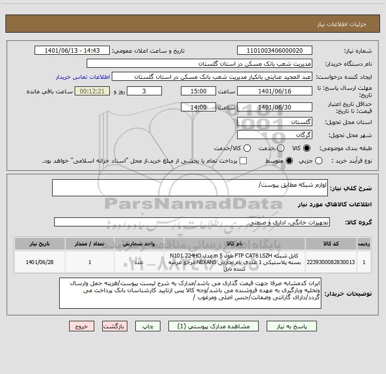 نام دستگاه خریدار:مدیریت شعب بانک مسکن در استان گلستان