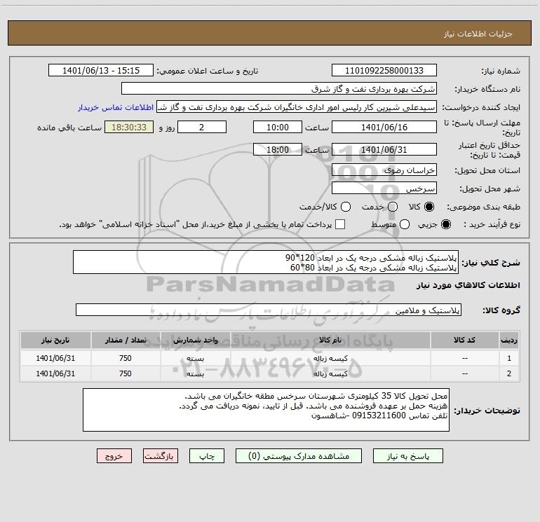 نام دستگاه خریدار:شرکت بهره برداری نفت و گاز شرق