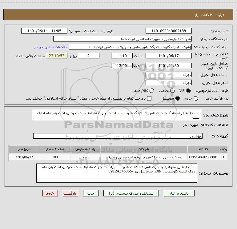 نام دستگاه خریدار:شرکت هواپیمایی جمهوری اسلامی ایران هما