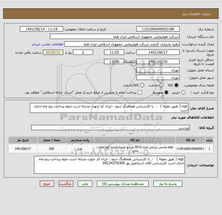 نام دستگاه خریدار:شرکت هواپیمایی جمهوری اسلامی ایران هما