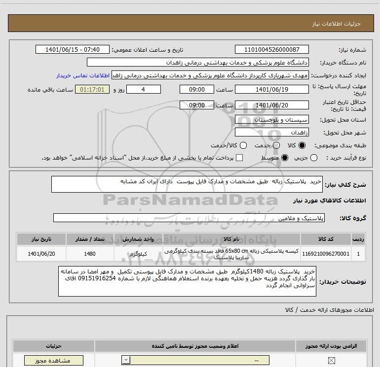 نام دستگاه خریدار:دانشگاه علوم پزشکی و خدمات بهداشتی درمانی زاهدان