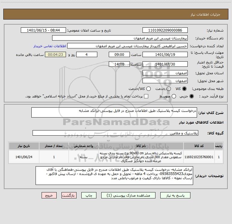 شرح کلی نیاز: درخواست کیسه پلاستیک طبق اطلاعات مندرج در فایل پیوستی-ایرانکد مشابه