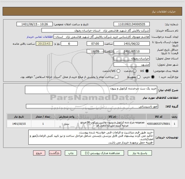 نام دستگاه خریدار:شرکت پالایش گاز شهید هاشمی نژاد استان خراسان رضوی