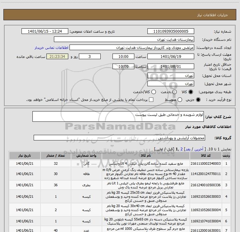 شرح کلی نیاز: لوازم شوینده و خدماتی طبق لیست پیوست